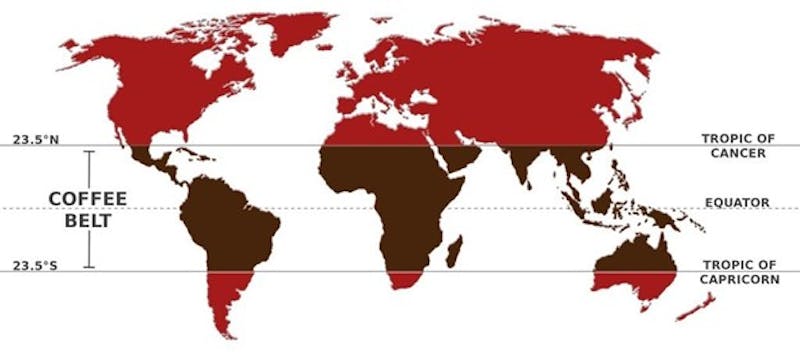 Koffie wordt alleen in landen rondom de evenaar verbouwd. Dit zijn ruim 70 verschillende landen die samen de ‘Coffee Belt’ vormen. In deze Coffee Belt zijn er twee koffiesoorten het belangrijkst, namelijk Arabica en Robusta. Deze koffiesoorten worden veelal geproduceerd voor de export in landen met relatief lage inkomens. En wat voor export: in 2020 importeerde de EU zeker 2,9 miljoen ton groene koffiebonen waar 1,9 miljoen ton gebrande koffie uit voortkwam. Groene koffie is zwaarder dan gebrande koffie, vandaar het verschil in gewicht. Europa is hiermee de grootste koffiemarkt ter wereld, met 33% van de wereldwijde koffieproductie die naar EU-landen wordt geëxporteerd. Deze consumptie komt neer op een gemiddelde van 5 kg koffie per persoon per jaar in Europa! In de productielanden zorgt koffie dan ook voor een aanzienlijk deel van hun exportinkomsten.